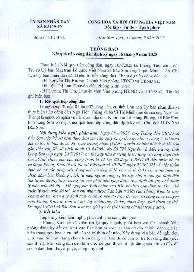Tiêu đề văn bản | Thông báo kết quả tiếp công dân định kỳ ngày 16/9/2025 | ||
