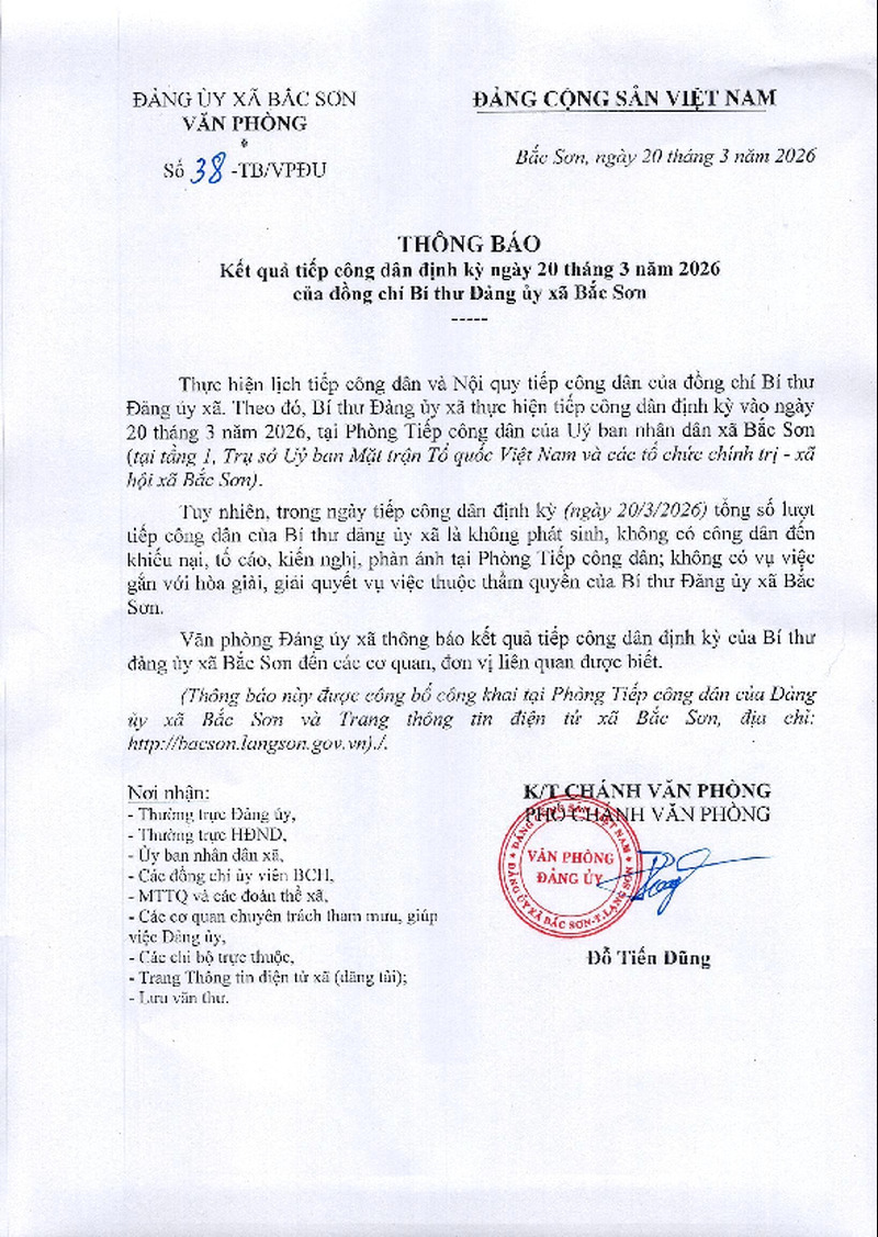 | Tiêu đề văn bản | THÔNG BÁO TIẾP CÔNG DÂN THÁNG NGÀY 20 THÁNG 3 NĂM 2026 CỦA ĐỒNG CHÍ BÍ THƯ ĐẢNG ỦY | ||
