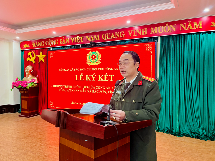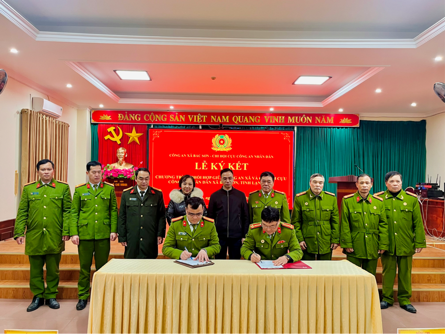Ngày 22/01/2026, Công an xã Bắc Sơn và Chi hội Cựu Công an nhân dân xã Bắc Sơn phối hợp tổ chức Lễ ký kết Quy chế phối hợp trong công tác bảo đảm an ninh, trật tự và xây dựng lực lượng Công an nhân dân trên địa bàn xã Bắc Sơn.