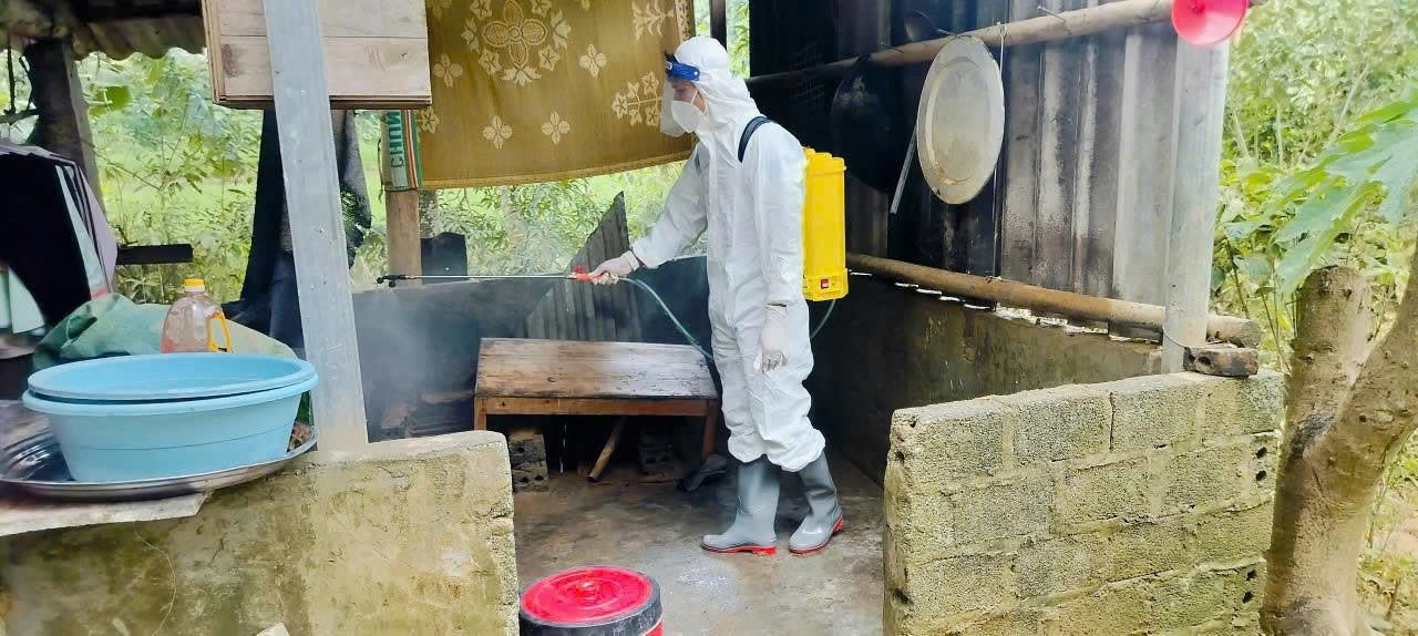 Ảnh: Nhân viên y tế phun khử khuẩn phòng dịch sau ngập lụt