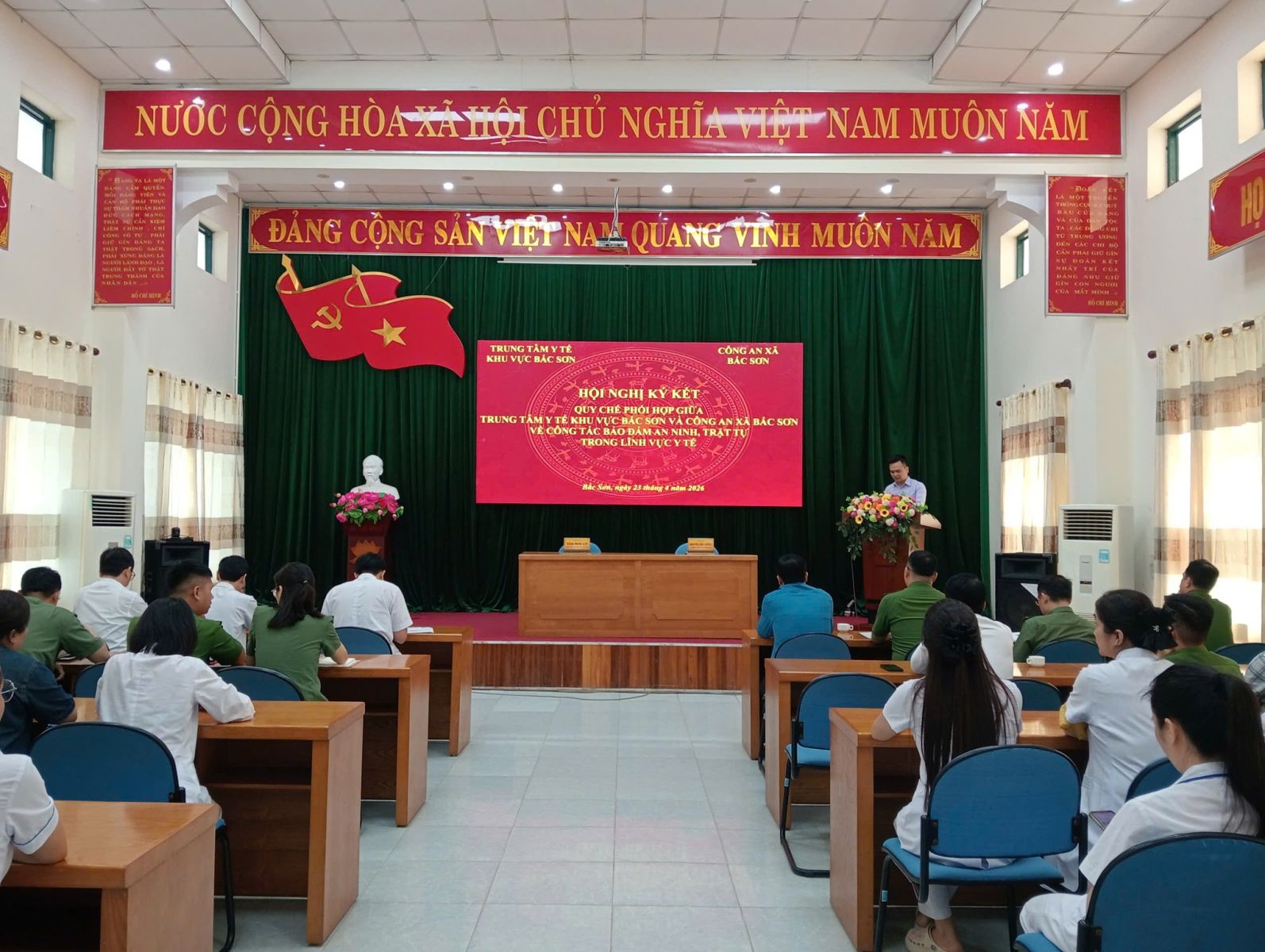 Chiều 23/4/2026, tại Trung tâm y tế khu vực Bắc Sơn tổ chức Hội nghị Kk Quy chế phối hợp giữa Công an xã Bắc Sơn và Trung tâm Y tế khu vực Bắc Sơn. Tham dự hội nghị có đồng chí Phương Anh Tư, Đảng ủy viên, Phó Chủ tịch UBND xã Bắc Sơn cùng các đồng chí Lãnh đạo và cán bộ của hai đơn vị.