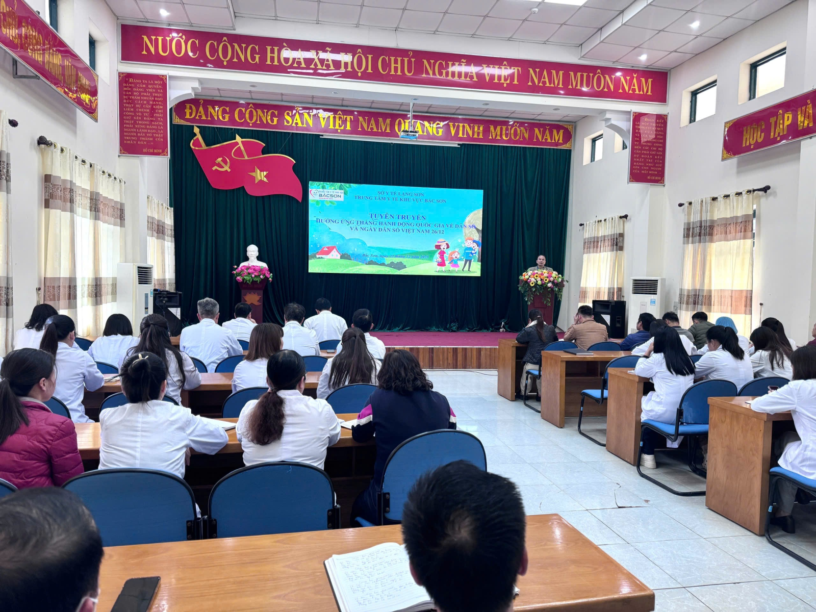 Chiều ngày 22/12/2025, tại buổi giao ban toàn đơn vị, Trung tâm Y tế khu vực Bắc Sơn đã lồng ghép tuyên truyền hưởng ứng Tháng hành động Quốc gia về Dân số và Ngày Dân số Việt Nam 26/12/2025. Tham dự buổi tuyên truyền có 70 đồng chí là Lãnh đạo, viên chức đang làm việc tại Trung tâm Y tế khu vực Bắc Sơn.