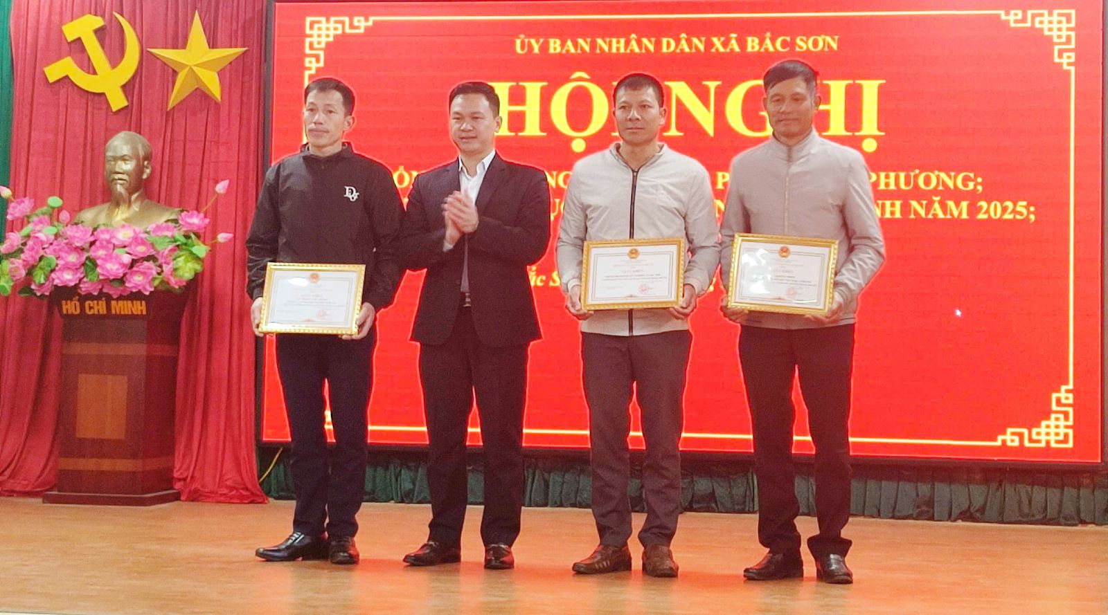 Nhân dịp này, UBND xã Bắc Sơn đã khen thưởng cho 01 tập thể và 03 nhân có thành tích xuất sắc trong công tác Quân sự - Quốc phòng địa phương năm 2025.