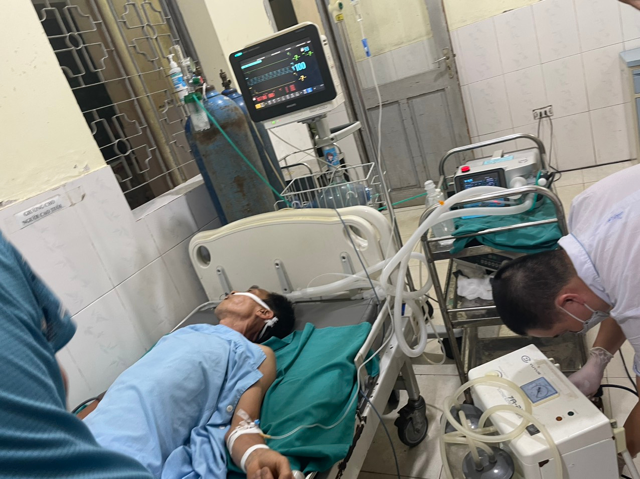 Trước nguy cơ không thể thông khí được, có thể dẫn đến tử vong, kíp cấp cứu Hồi sức cấp cứu - Ngoại đã khẩn trương tiến hành mở khí quản cấp cứu. Sau mở khí quản thông khí thành công bệnh nhân đã qua được cơn nguy kịch: Da niêm mạc hồng trở lại, bão hòa oxy máu đạt mức bình thường, huyết áp ổn định, có phản xạ với kích thích đau.