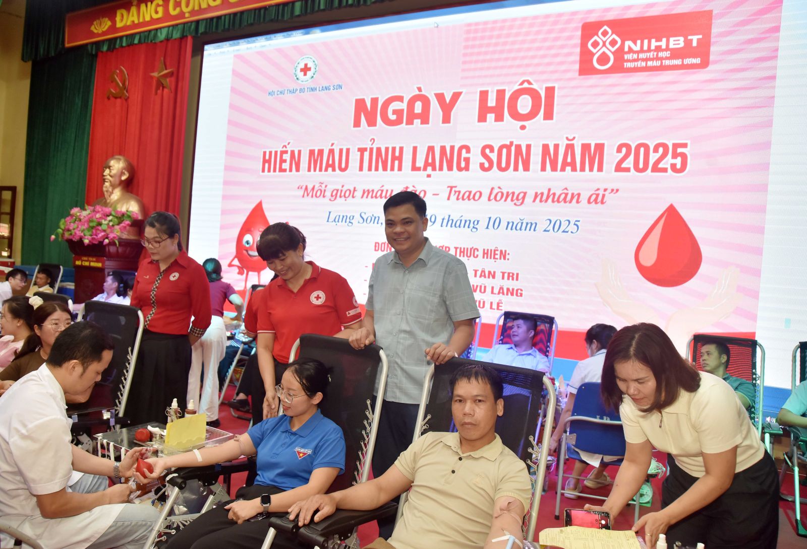 Sáng ngày 19/10/2025, tại Hội trường Trung tâm hành chính xã Bắc Sơn, Ban Chỉ đạo vận động hiến máu tình nguyện xã Bắc Sơn phối hợp với Hội Chữ thập đỏ tỉnh Lạng Sơn và Viện Huyết học - Truyền máu Trung ương tổ chức Ngày hội hiến máu tình nguyện năm 2025 với thông điệp “Mỗi giọt máu đào – Trao lòng nhân ái”. Đây là hoạt động mang ý nghĩa nhân đạo sâu sắc, nhằm kịp thời hỗ trợ nguồn máu điều trị cho bệnh nhân tại các cơ sở y tế, góp phần lan tỏa tinh thần sẻ chia trong cộng đồng.