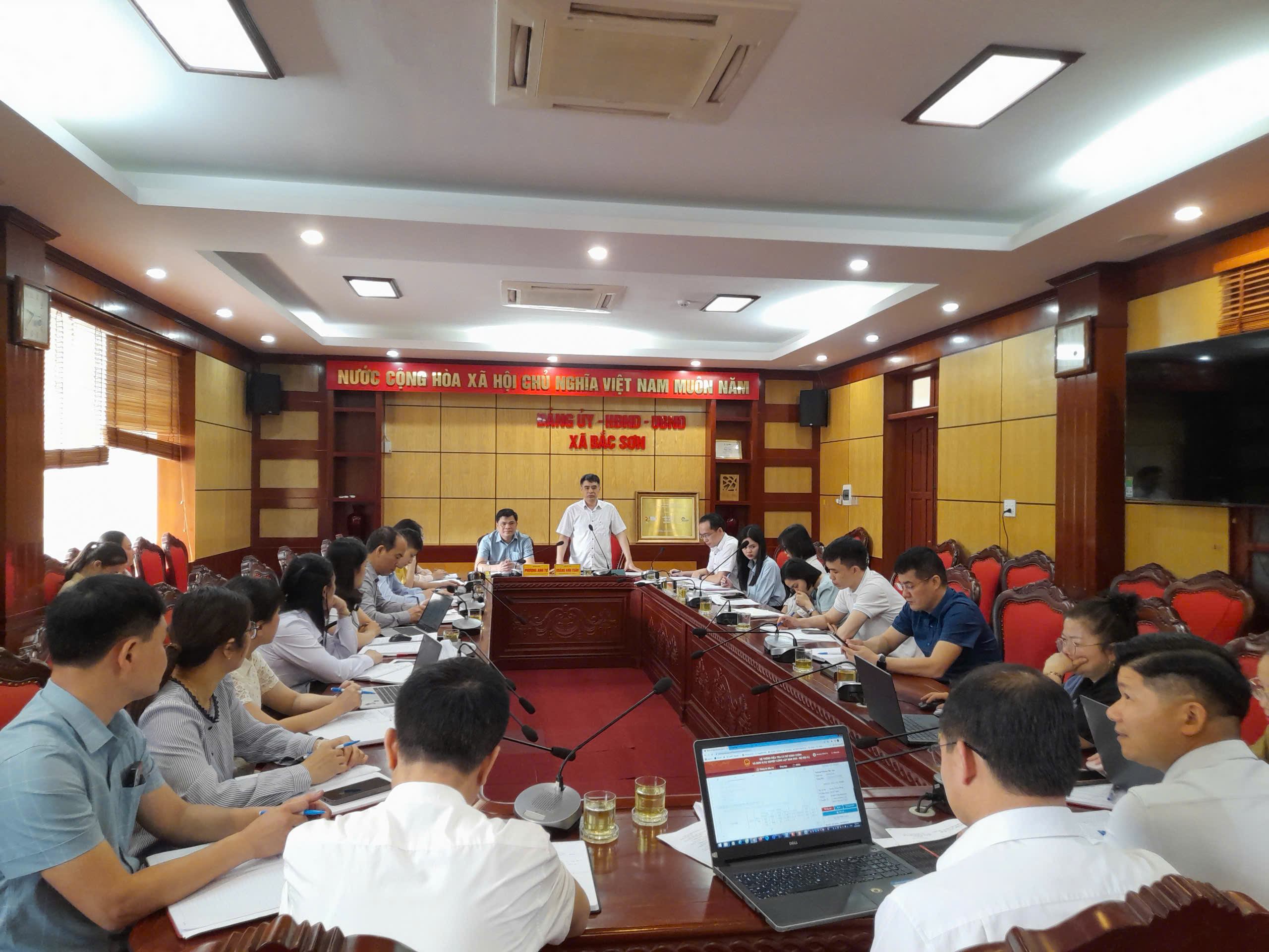 Thực hiện Công văn số 1113/SNV-TCBC ngày 22/4/2026 của Sở Nội vụ tỉnh Lạng Sơn về việc kiểm tra, giám sát công tác điều tra cơ sở hành chính, sự nghiệp năm 2026, sáng ngày 28/4/2026, Ban Chỉ đạo Điều tra cơ sở hành chính, sự nghiệp năm 2026 xã Bắc Sơn đã tổ chức buổi làm việc với Đoàn kiểm tra của Ban Chỉ đạo cấp tỉnh.