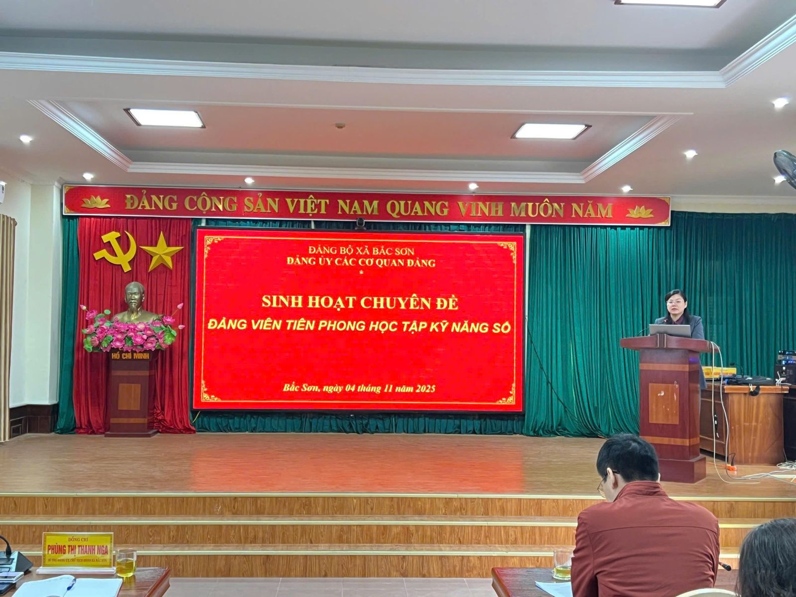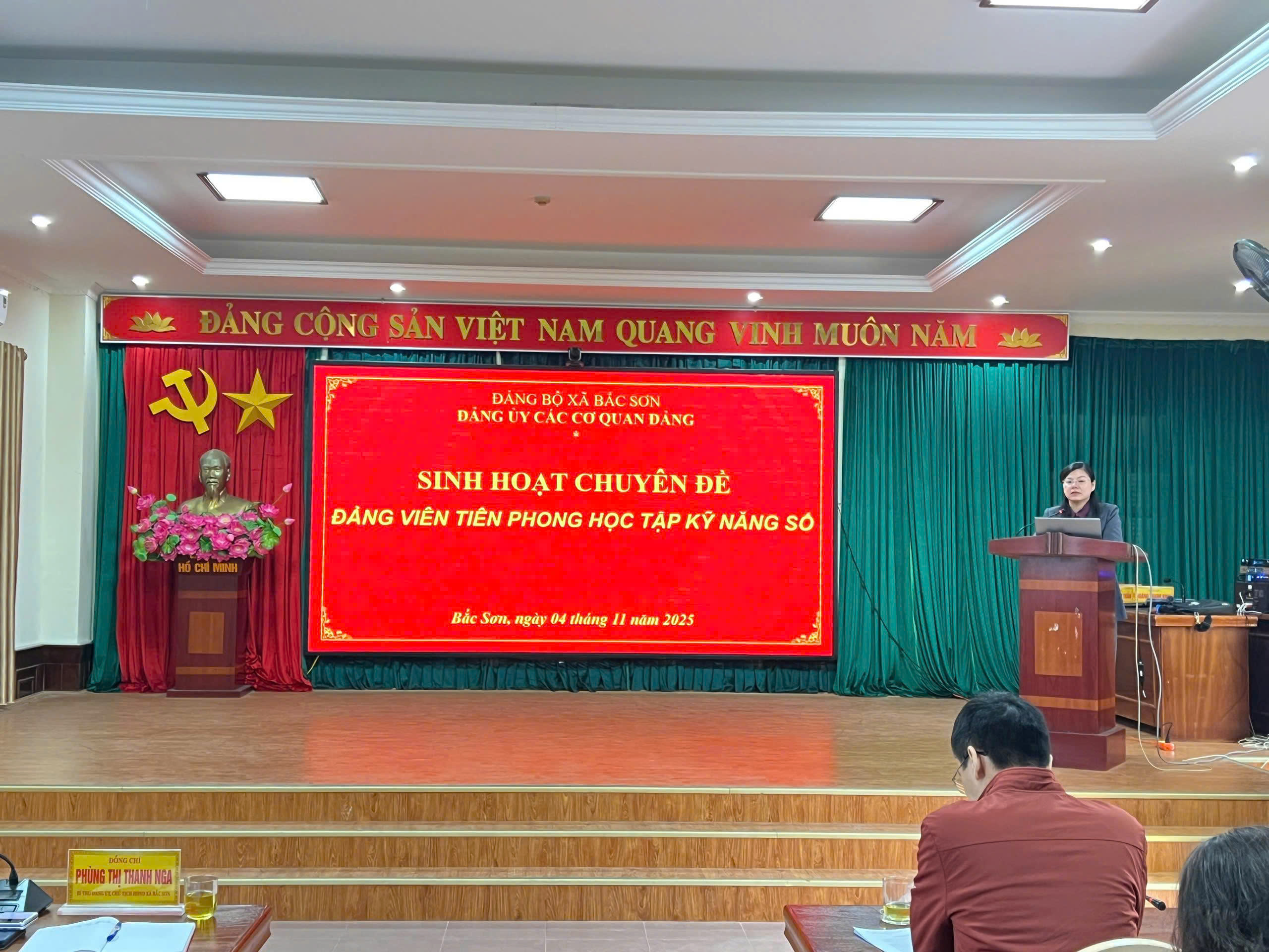 Sáng ngày 04/11/2025, Đảng bộ các cơ quan Đảng xã Bắc Sơn tổ chức sinh hoạt chuyên đề tháng 11 với chủ đề: “Đảng viên tiên phong học tập kỹ năng số”. Dự và chỉ đạo buổi sinh hoạt có đồng chí Phùng Thị Thanh Nga – Bí thư Đảng ủy xã và đồng chí Đinh Mã Linh – Phó Bí thư Thường trực Đảng ủy xã Bắc Sơn. Báo cáo viên của buổi sinh hoạt là đồng chí Nông Thị Thu Trang – Đảng ủy viên, Chánh Văn phòng Đảng ủy.