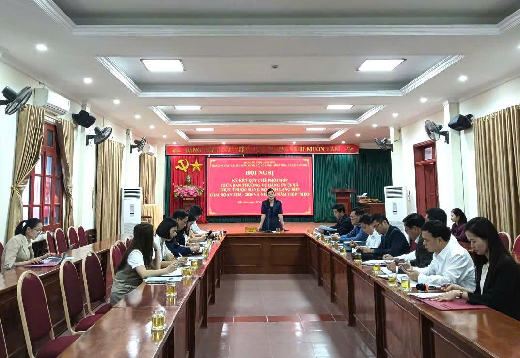 Chiều ngày 29/10/2025, tại trụ sở Đảng ủy, HĐND, UBND xã Bắc Sơn, Ban Thường vụ Đảng ủy 06 xã gồm Bắc Sơn, Hưng Vũ, Vũ Lăng, Nhất Hòa, Vũ Lễ và Tân Tri đã tổ chức Hội nghị ký kết Quy chế phối hợp giai đoạn 2025–2030 và những năm tiếp theo.