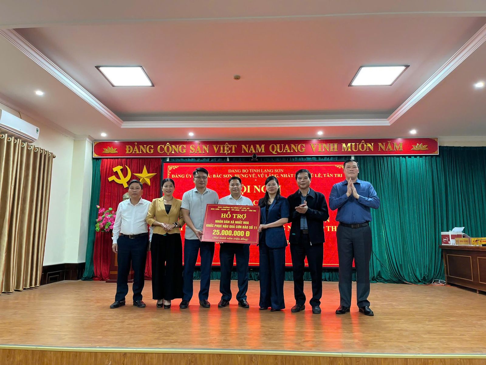 Cũng trong chương trình, Ban Thường vụ Đảng ủy 05 xã: Bắc Sơn, Hưng Vũ, Vũ Lăng, Vũ Lễ và Tân Tri đã trao kinh phí hỗ trợ xã Nhất Hòa nhằm giúp địa phương khắc phục hậu quả cơn bão số 11 (Matmo), thể hiện tinh thần sẻ chia, tương trợ giữa các đơn vị.