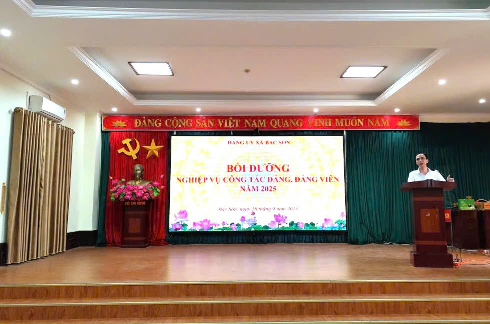 Thực hiện Kế hoạch đào tạo, bồi dưỡng cán bộ, công chức, viên chức khối Đảng, Mặt trận Tổ quốc và các tổ chức chính trị – xã hội năm 2025 của Ban Thường vụ Tỉnh ủy Lạng Sơn, sáng ngày 18/9/2025, Đảng ủy xã Bắc Sơn tổ chức khai mạc Lớp bồi dưỡng nghiệp vụ công tác Đảng năm 2025 cho 90 đồng chí Bí thư, Phó bí thư các chi bộ, đảng bộ trực thuộc. Đồng chí Đinh Mã Linh, Phó Bí thư Thường trực Đảng ủy dự và chỉ đạo lớp bồi dưỡng.